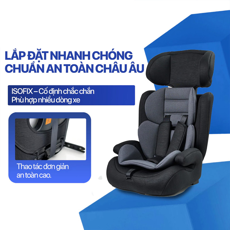 Sự kết hợp giữa ISOFIX 2 điểm và hệ thống đai ô tô 3 điểm giúp ghế cố định chắc chắn trong hầu hết các dòng xe. Cấu trúc này phù hợp cho cả xe gia đình lẫn xe dịch vụ - đúng tinh thần "lắp vào là yên tâm".
