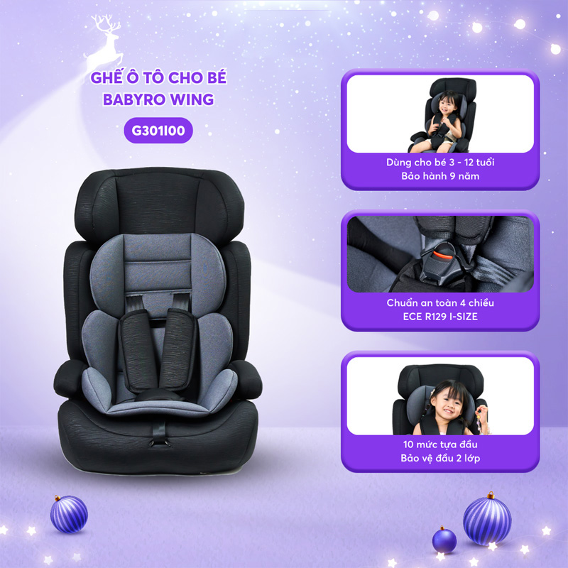 BABYRO WING là dòng ghế ô tô thế hệ mới theo chuẩn ECE R44, hướng đến nhóm ba mẹ cần một sản phẩm an toàn - nhẹ - dễ lắp - phù hợp mọi loại xe. Ở mức trọng lượng chỉ 4.5 kg, WING là một trong những mẫu nhẹ nhất phân khúc, đặc biệt lý tưởng với gia đình thường xuyên đổi xe, di chuyển nhiều hoặc muốn thao tác nhanh gọn mà không tốn sức.