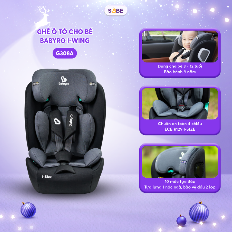 Ghế ô tô cho bé BABYRO I-WING là sự lựa chọn hoàn hảo, được thiết kế để bảo vệ con bạn từ những ngày đầu chập chững cho đến khi trưởng thành. Với tiêu chuẩn an toàn i-Size ECE R129 cao cấp nhất, BABYRO I-WING là người bạn đồng hành tin cậy trên mọi hành trình, mang đến sự an tâm tuyệt đối cho cha mẹ.