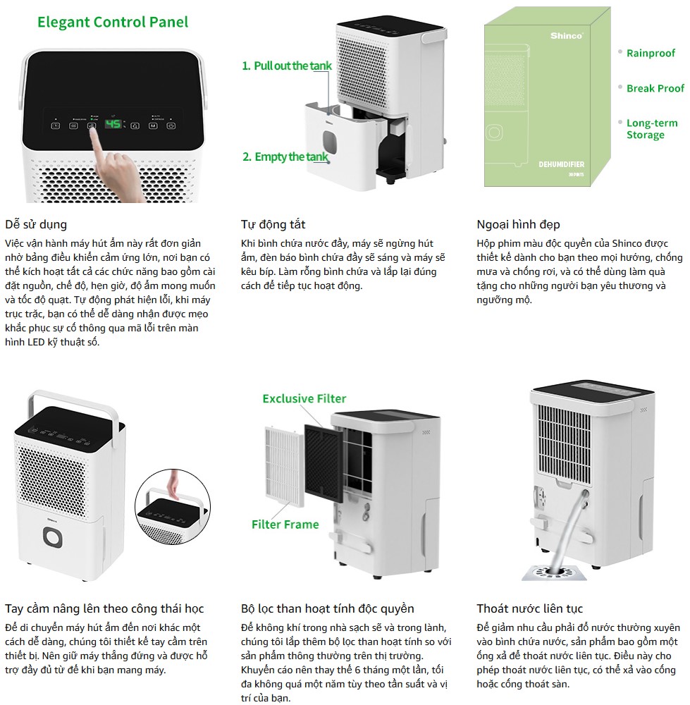 Bạn đang tìm kiếm giải pháp xử lý ẩm mốc triệt để cho gia đình? Máy hút ẩm Shinco CF12BD/L3 là sản phẩm đến từ Shinco – tập đoàn gia dụng hàng đầu Trung Quốc với bề dày lịch sử từ năm 1980. Đây chính là "nguyên mẫu" thiết kế mà rất nhiều dòng máy hút ẩm trên thị trường hiện nay đang học hỏi theo.