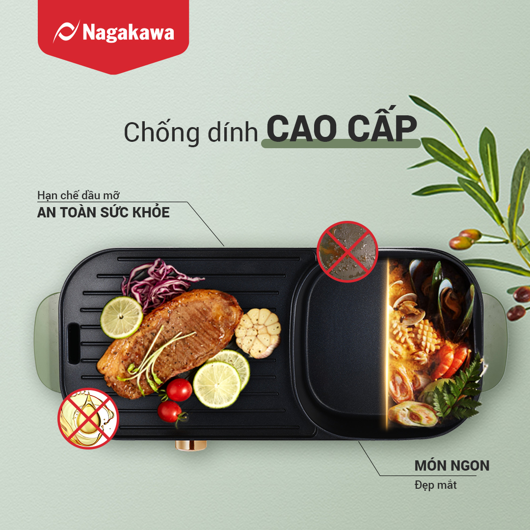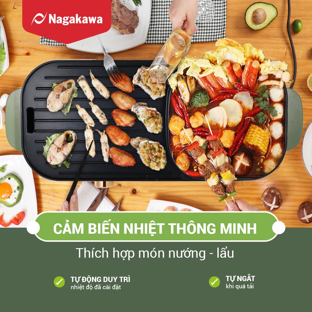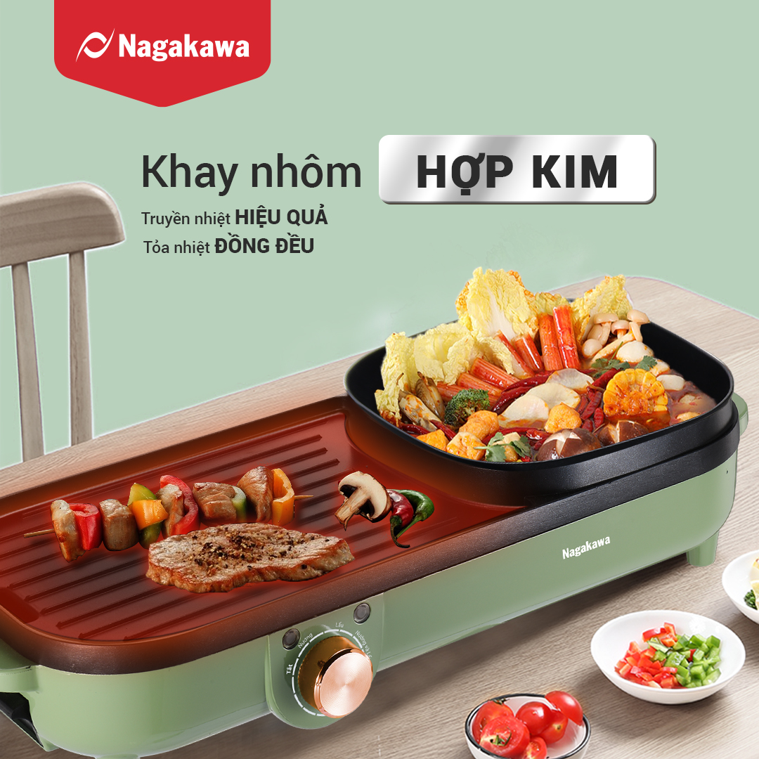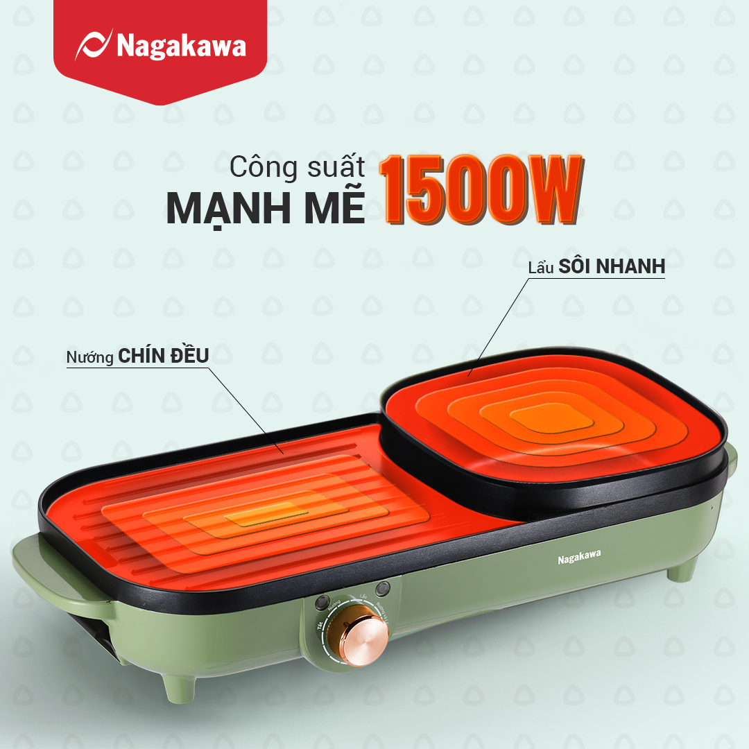 Bếp lẩu nướng điện Nagakawa NAG3104 là sự kết hợp tiện lợi của bếp nướng và nồi lẩu, với tổng công suất 1500W mạnh mẽ, nhanh chóng kích hoạt đồng thời cả 2 vùng nướng và lẩu một cách hiệu quả, đáp ứng cùng lúc nhu cầu đa dạng cho 3-6 người,mang đến trải nghiệm hài lòng cho các bữa tiệc tại gia.