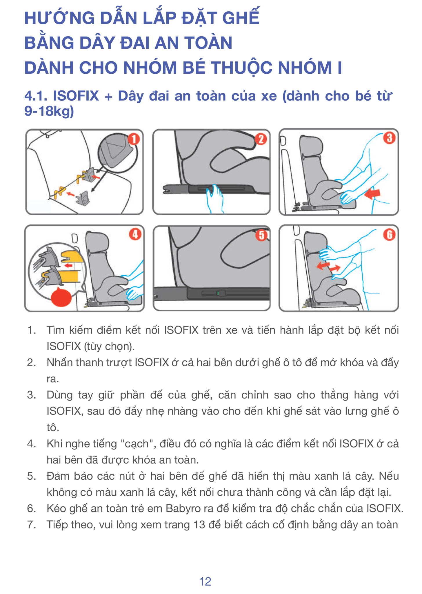 Sự kết hợp giữa ISOFIX 2 điểm và hệ thống đai ô tô 3 điểm giúp ghế cố định chắc chắn trong hầu hết các dòng xe. Cấu trúc này phù hợp cho cả xe gia đình lẫn xe dịch vụ - đúng tinh thần "lắp vào là yên tâm".