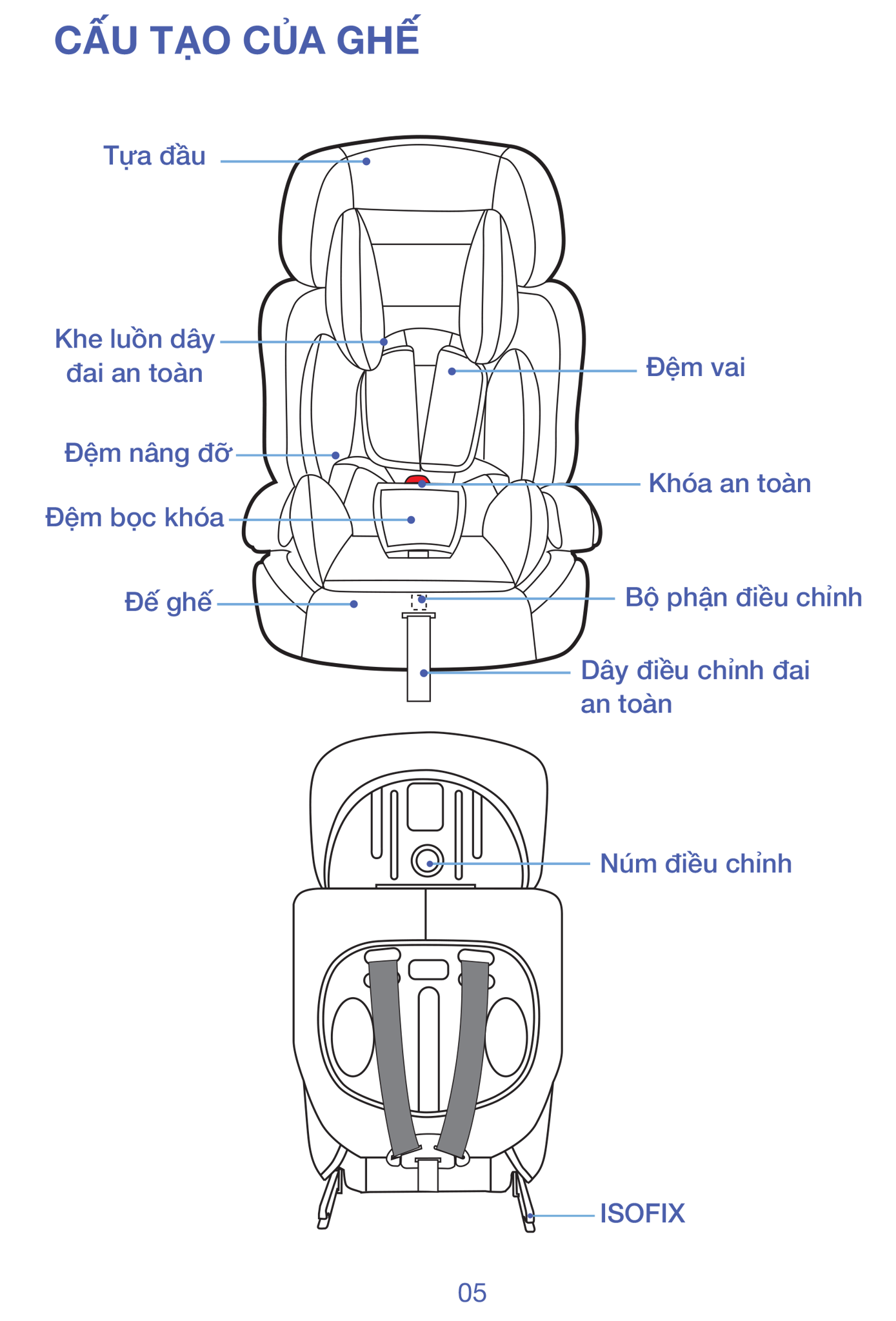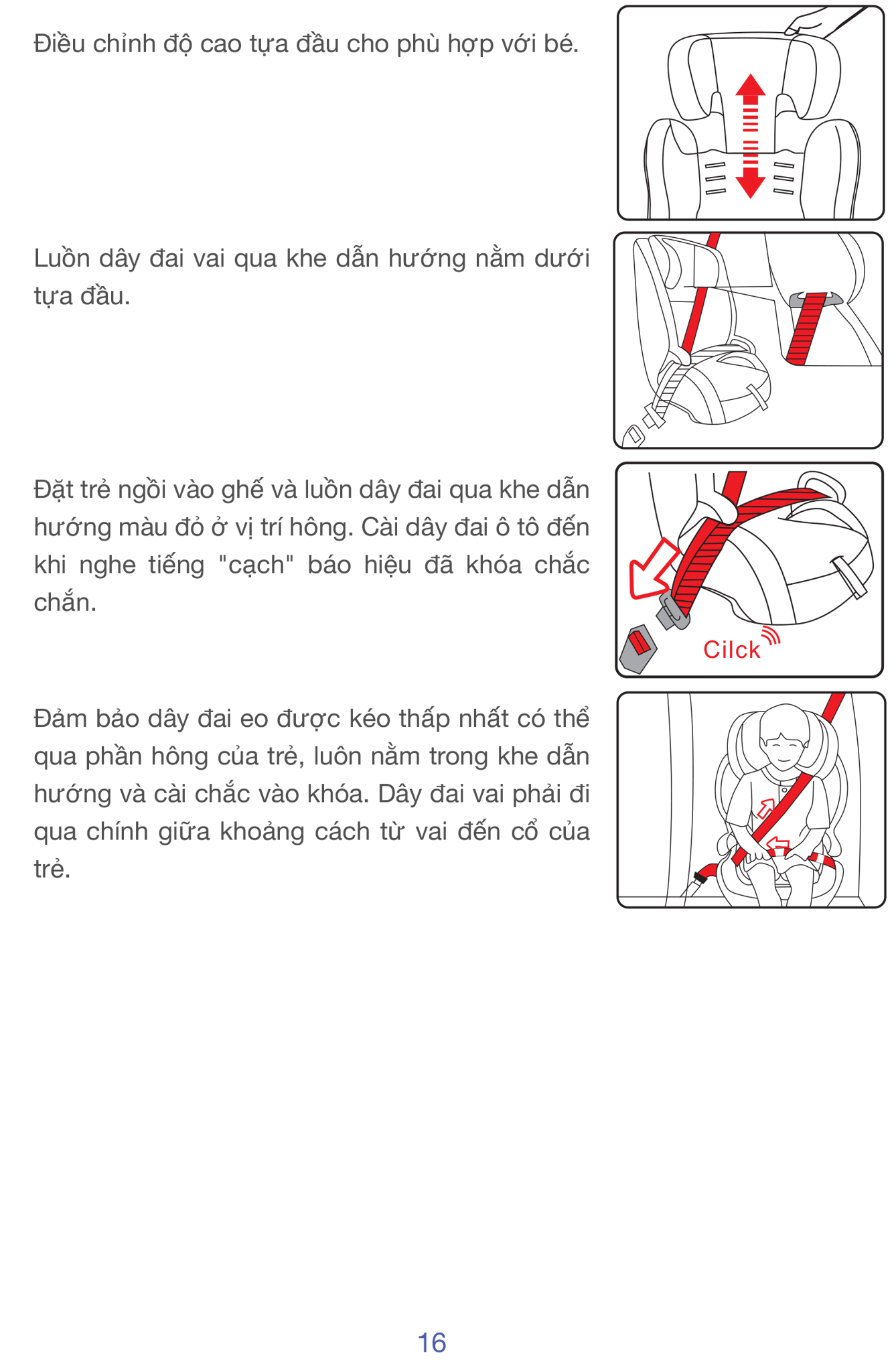 | Tựa đầu / điều chỉnh | Có ~ 6 mức tựa đầu theo chiều cao; dây đai an toàn có thể điều chỉnh 4 mức |