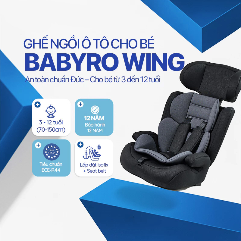 BABYRO WING là dòng ghế ô tô thế hệ mới theo chuẩn ECE R44, hướng đến nhóm ba mẹ cần một sản phẩm an toàn - nhẹ - dễ lắp - phù hợp mọi loại xe. Ở mức trọng lượng chỉ 4.5 kg, WING là một trong những mẫu nhẹ nhất phân khúc, đặc biệt lý tưởng với gia đình thường xuyên đổi xe, di chuyển nhiều hoặc muốn thao tác nhanh gọn mà không tốn sức.