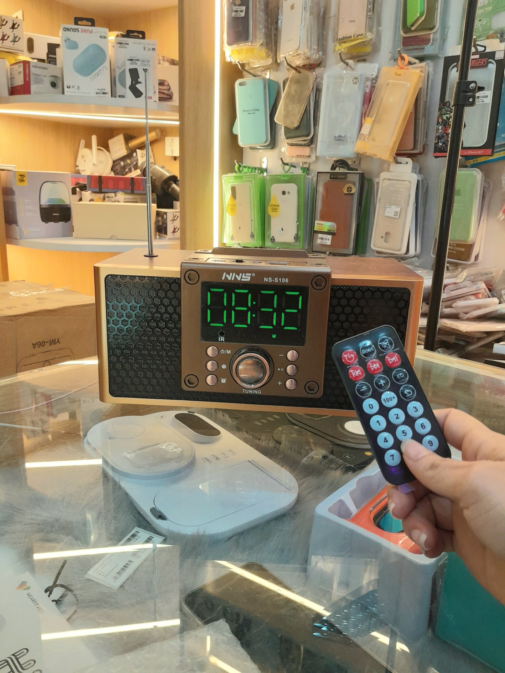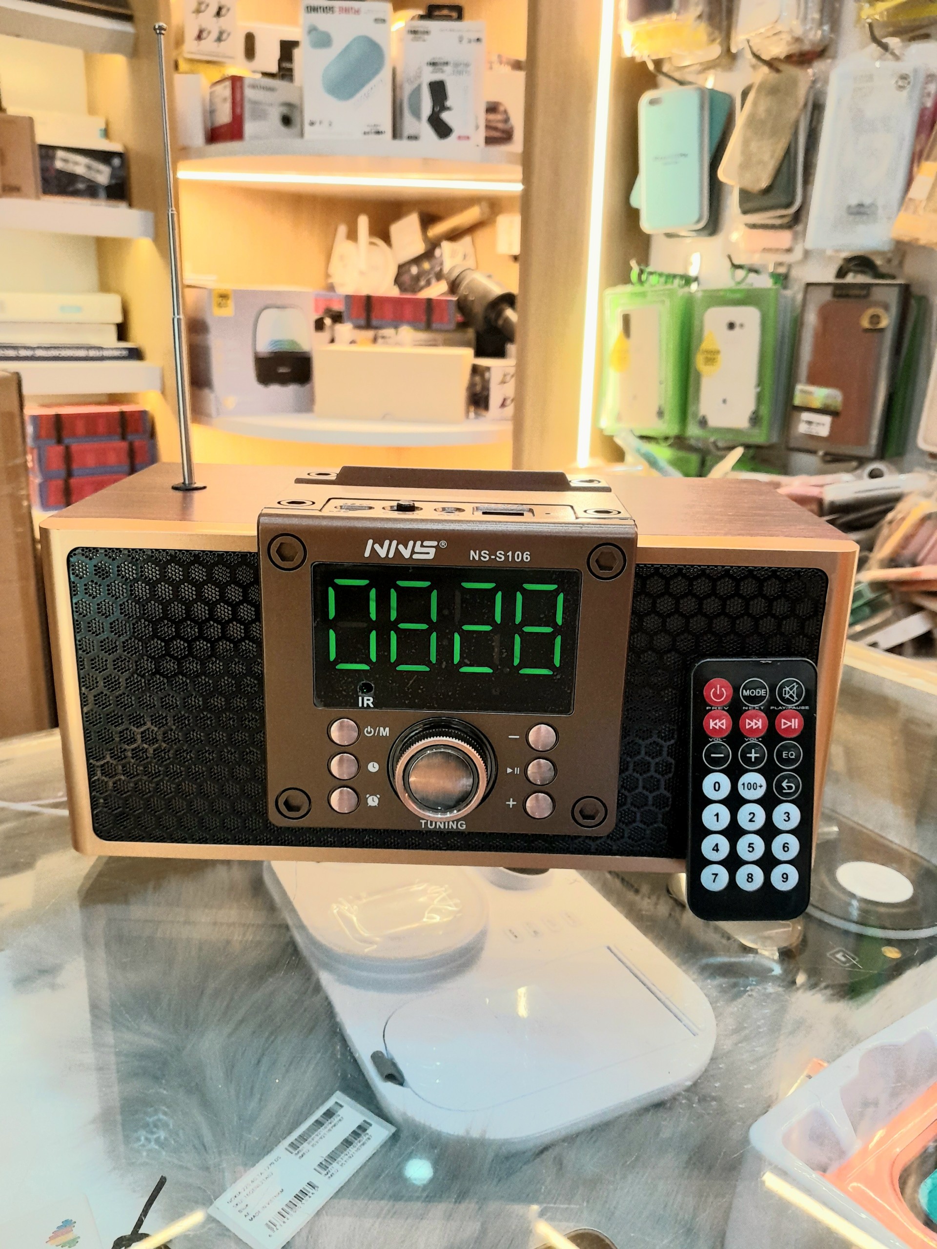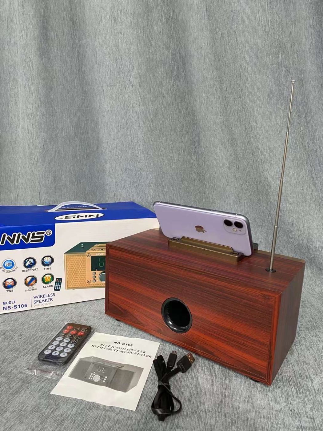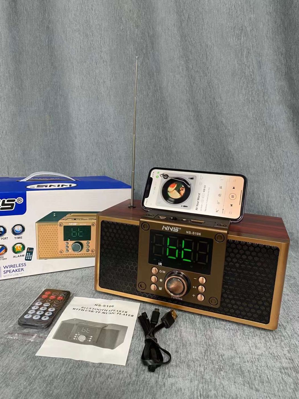 Loa bluetooth NS S106 không dây, đài FM, đồng hồ để bàn