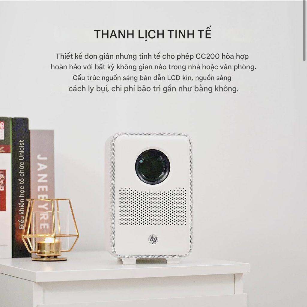 Không còn là một chiếc máy chiếu thô kệch, HP CC200 sở hữu tông màu trắng tinh khôi kết hợp với lớp vải bọc tinh tế. Thiết bị không chỉ là công cụ giải trí mà còn là món đồ nội thất cao cấp, phù hợp cho phòng khách, phòng ngủ hay các văn phòng hiện đại.