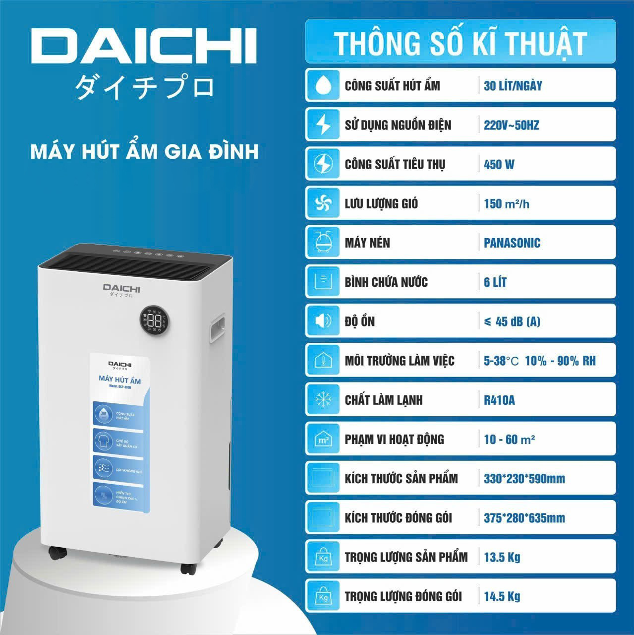 Daichi DCP-30 Smart được thiết kế để hoạt động hiệu quả trong không gian lớn, giúp: