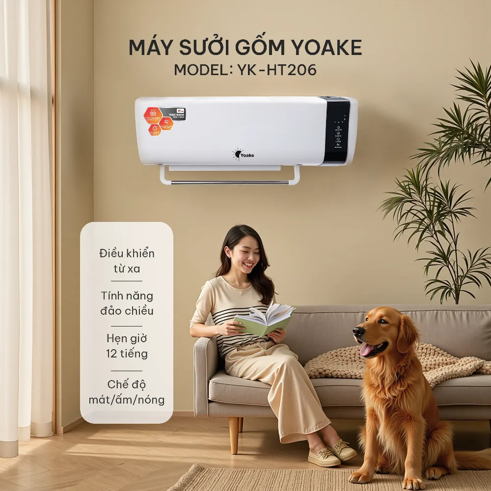 Máy sưởi gốm treo tường Yoake YK-HT206 là lựa chọn lý tưởng cho gia đình trong mùa đông, vừa an toàn – tiện nghi – tiết kiệm năng lượng, mang đến không gian ấm áp và thoải mái mọi lúc.
