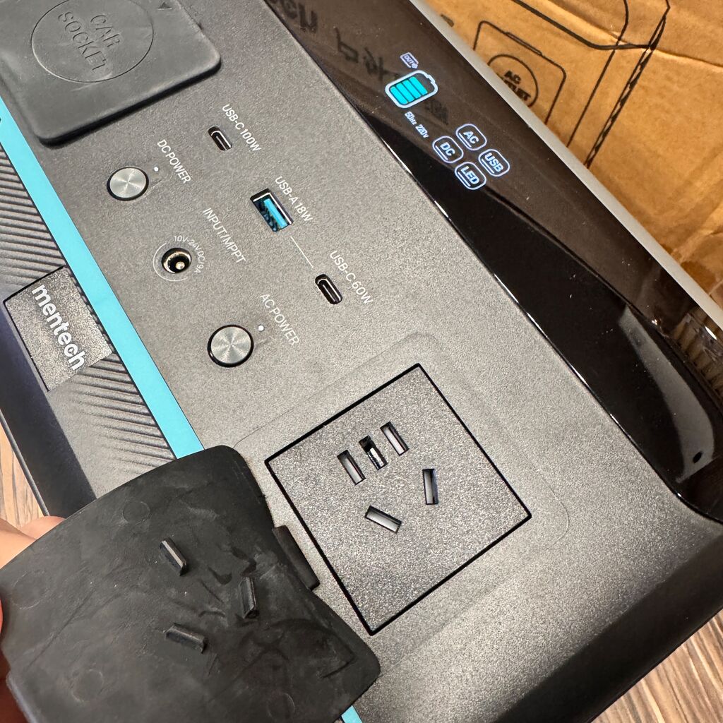 Công suất đầu ra: | • AC Output: 220V~50Hz, 600W (Công suất đỉnh 1200W) • DC Output: 12V=5A Max (Chia sẻ với cổng tẩu thuốc xe hơi) • USB-C1: 5V=3A / 9V=3A / 12V=3A / 15V=3A / 20V=5A (Max 100W) • USB-C2: 5V=3A / 9V=3A / 12V=3A / 15V=3A / 20V=3A • USB-A: 5V=3A / 9V=2A / 12V=1.5A (Max 18W) |
